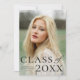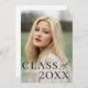 Una invitación de graduación fotográfica diseñada por Stacey Meacham que presenta una gran clase clásica de tipo y año de graduación.