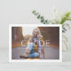 Esta moda y elegante invitación de graduación cuenta con una sola fotografía grande y una tipografía moderna. La foto está enmarcada por una frontera blanca, llamando la atención sobre el graduado y el graduado es enfatizado por un nombre grande y audaz de tipo blanco simple con los detalles de la graduación, incluyendo el nombre completo del estudiante, el año de graduación y el nombre de la escuela, más pequeño debajo. La parte posterior de la tarjeta contiene una segunda fotografía y espacio adicional para más detalles. Esta minimalista invitación de graduación se inspiró en libros de moda y tiene un atractivo sofisticado pero de tendencia.