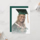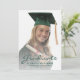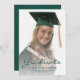 Moderna invitación de graduación con una foto vertical personalizado. La palabra "Graduado" aparece en un guión de color verde oscuro, con el nombre del graduado, la escuela y el año de graduación debajo en letra sans serif. Reemplace fácilmente la imagen de muestra con la foto de su propio graduado. Una pantalla de degradado blanco ayuda a asegurar que aparece el texto. El reverso es verde oscuro sólido. Ideal para graduación de secundaria o universitaria.