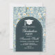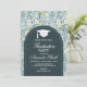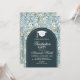 Celebre su logro con esta impresionante invitación de fiesta de graduación "Floral Marino Moody". Cuenta con un delicado patrón de flores silvestres sobre un fondo oscuro y un marco arqueado sofisticado con un icono de gorra de graduación. Este elegante diseño botánico es perfecto para un graduado de secundaria o universidad que busque un look moderno pero atemporal. Personalice fácilmente todo el texto para invitar a amigos y familiares a una celebración memorable.