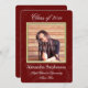 Esta elegante y elegante invitación de graduación o invitación a una fiesta de graduación de Burgundy Photo es perfecta para cualquier graduado universitario, de secundaria o de cualquier nivel. El diseño es moderno y cuenta con un fondo giratorio negro profundo con un marco fotográfico para su mejor foto. Muy sencillo de personalizar con tu información. No se necesita ninguna foto, solo hay que añadir tu información y tu foto digital. La graduación de estilo moderno o clásico invita a hombres o mujeres.
