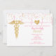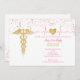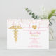 Invitación de graduación de la Escuela de Enfermería en rosa y oro con icono médico, Caduceus.