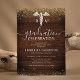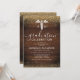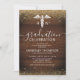 Invitaciones de fiesta de graduación de la escuela de medicina rústicas con un fondo de madera rústica, brillo dorado falso, el símbolo del caduceo y una plantilla de celebración moderna que es fácil de personalizar.