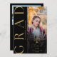 Esta moderna invitación de graduación de la escuela de leyes en negro y oro se puede personalizar con tus fotos y detalles de graduación. Diseñado por Thisisnotme©
