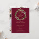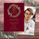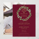Con una elegante guirnalda de vegetación botánica y tipografía dorada clásica sobre un fondo de borgoña, esta elegante invitación de graduación de la facultad de derecho se puede personalizar con la foto de su graduado en el reverso. Diseñado por Thisisnotme©