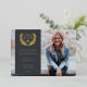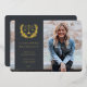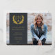 Una invitación de fotos de graduación formal pero moderna para celebrar a los que obtienen un título de Médica Juris. En la parte delantera de la invitación hay una foto de sangre completa con un revestimiento de color. El símbolo de escalas de ley (con la abreviatura 'JD'), la corona laurel y el texto de la plantilla se pueden imprimir en un color de Relieve metalizado de su elección. La parte posterior presenta un fondo de color sólido y un texto de plantilla para un mensaje más largo. Si prefiere no incluir texto en la parte posterior, sólo debe eliminarlo antes de realizar el pedido. Si prefiere una foto en la parte posterior de la tarjeta, elimine el fondo coloreado y el texto de la plantilla y cargue su propia foto. El diseño está disponible en diferentes colores en mi tienda, en versiones sin la abreviatura 'JD' para que puedan ser adaptadas para cualquier calificación legal y también en versiones sin Relieve metalizado presionadas. También están disponibles otros diseños sin una superposición de color entre la foto y el texto (en Relieve metalizado y no Relieve metalizado).