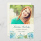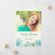 Estos elegantes anuncios de graduación fotográfica presentan flores pintadas a mano en azul, verde y agua sobre un fondo de marfil de color. ¡Usa la parte trasera de la tarjeta para una nota personal o agrega tu propio texto personalizado para usarlo como invitación de fiesta! Reemplace la foto de la plantilla con una imagen propia antes de comprarla. :)