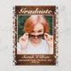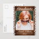 Postal de invitación de graduación. Estilo rústico con fondo de madera marrón y decoración de encaje blanco. Hay más artículos disponibles en este estilo en nuestra tienda. Puede editar el diseño más adelante, cambiar el color de fondo, las fuentes y añadir texto adicional haciendo clic en el vínculo "Personalizar esta plantilla" y, a continuación, en el vínculo "Hacer clic en el personalizar más adelante".