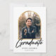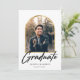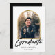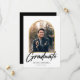 Marco fotográfico del Arco Dorado, tarjeta de invitación de graduación. Guión de pincel moderno "Graduado" superpuesto sobre fondo blanco con color de fondo negro clásico.