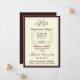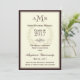 Esta elegante invitación formal de graduación incluye un borde marrón de chocolate y iniciales de monograma en la parte superior. El estilo caligráfico ornamentado en el centro y la marca de agua laurel le confieren un toque de clase. Personalice estas invitaciones con su información de graduación. También hay mucho espacio en la parte trasera para más información. Este diseño funciona mejor con el material rectangular, para esquinas redondeadas, consulte lo siguiente: