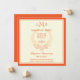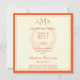 Esta elegante invitación formal de graduación cuadrada presenta un borde naranja y iniciales de monograma en la parte superior. El estilo caligráfico ornamental del centro y la marca de agua de laurel escudo le dan un toque de clase. Personalice estas invitaciones con su información de graduación. También hay mucho espacio en la parte trasera para más información. Este diseño funciona mejor con el material de cartón cuadrado, para esquinas rectangulares o redondeadas vea lo siguiente: