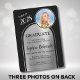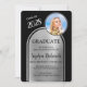 Esta elegante invitación de graduación presenta un arco doble con letras negras sobre un fondo plateado cepillado y una sala para una foto del honor de esta ocasión especial. La parte trasera de la tarjeta tiene espacio para tres fotos adicionales. Mucho que personalizar para hacer apropiado para tu propio evento. Cualquier pregunta de diseño, sólo tiene que enviar un chat o un correo electrónico a charmdesignstudio@rcn.com y estaremos encantados de asistirle. Contáctenos también si desea cambiar el color de fondo a un color de escuela o a un color favorito.