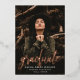 Simple invitación de graduación con la foto del graduado con "graduado" en escritura de Relieve metalizado oro rosa. Personalice la parte delantera de la invitación de graduación fotográfica añadiendo el nombre del graduado, el nombre de la escuela y el año de graduación. La invitación se invierte para mostrar un patrón de rociadores blancos con un fondo negro o color de su elección.