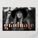 Elegantes anuncios de graduación con la foto horizontal del graduado con la inscripción "graduado" en negritas letras de Relieve metalizado de oro rosa. Personalice la invitación de graduación fotográfica añadiendo el nombre del graduado, el año de graduación y la escuela. La invitación de graduación del Relieve metalizado de oro rosa se invierte para mostrar un patrón de arco retro en blanco y negro.