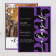 Moderna y mínima, esta invitación de graduación hace una declaración combinando el clásico blanco y negro con acentos de morado. Su diseño mínimo es un diseño simple y divertido para celebrar el gran evento del graduado. La parte trasera muestra la foto favorita de tu graduado. Creado por Simply Farmhouse Press.