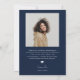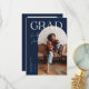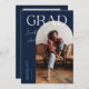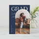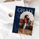 Elegante y moderna tarjeta de invitación de graduación para enviar a familia y amigos. Hay un armazón azul marino alrededor de tu foto. Dice "GRAD" en la parte superior con su nombre escrito debajo en un tipo de letra informal.