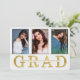 Anuncie la graduación, la fiesta de graduación o la invitación a la ceremonia con esta invitación de 3 fotos para los mayores graduados, con un diseño simple y moderno con GRAD escrito en falso dorado y la información de su graduado. Mi agradecimiento a Nastya Gepp por sus encantadoras fotos de marcador de posición.