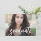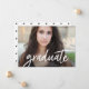 Esta invitación de graduación presenta la palabra "graduado" escrita en un moderno guión escrito a mano en blanco. Los campos de texto son totalmente personalizables. La información de la parte de graduación se puede agregar fácilmente a la parte posterior eliminando el fondo existente.