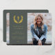 Una invitación fotográfica de graduación formal pero moderna para cualquier tipo de calificación médica. Cuenta con una foto de color con una cubierta de color y el símbolo Asclepius rodeado de una corona de laurel en un color de Relieve metalizado de su elección. El texto de la plantilla para los detalles del graduado también está presionado por Relieve metalizado y es completamente personalizable, por lo que se puede cambiar el tamaño del tipo de letra, el estilo y la ubicación. La parte posterior presenta un fondo de color sólido y un texto de plantilla para un mensaje más largo. Si prefiere no incluir texto en la parte posterior, sólo debe eliminarlo antes de realizar el pedido. Si prefiere una foto en la parte posterior de la tarjeta, elimine el fondo coloreado y el texto de la plantilla y cargue su propia foto. El diseño está disponible en otros colores y con diseños para cualificaciones médicas específicas en mi tienda.