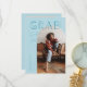 Elegante y mística tarjeta de invitación de graduación para mandarla a la familia y amigos. Hay un arco azul alrededor de tu foto. Dice "GRAD" en la parte superior con una fuente decorativa de tema celeste.
