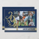 Anuncio de graduación de la promoción de 2024 con franja universitaria triple foto en azul y dorado.