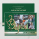 Anuncio de graduación de triple foto con franja universitaria dorada de la promoción de 2025 en verde y dorado.
