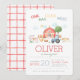 Invitación de cualquier edad de animales de granja lindos acuarela rojos