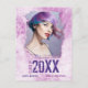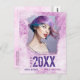 Guay, estilo moderno de grunge, postales de invitación de graduación de fotos en tonos rosa y morado. Este diseño único y personalizado presenta su foto personal, nombre, año de graduación y nombre de la escuela secundaria, universidad o universidad pintados en una pared de estilo angustiado.