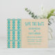 Anuncio de Guarda la Fecha con Borde Art Déco elegante y refinado con un patrón de borde deco turquesa en un fondo de textura de papel falso. Esta invitación de guarda la fecha es una excelente opción para anunciar tu boda moderna. Fácil de personalizar, simplemente agrega los detalles de tu boda en los campos de texto proporcionados. Haz clic en "Personalizar" para encontrar más opciones de personalización.