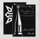 Una invitación de boda para guardar la fecha con una ilustración gráfica en blanco y negro de la aguja y la cruz de una iglesia. El reverso presenta una cruz sobre fondo negro.