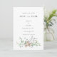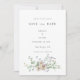 invitación de Guarda la Fecha floral de viola y eucalipto pintada a mano con acuarela