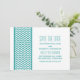 Anuncio de Guardar la Fecha con Borde de Chevron Chic y moderno que presenta un patrón de borde de chevron simple en turquesa y blanco. Este diseño elegante establecerá el tono para una boda elegante. Fácil de personalizar, simplemente agregue los detalles de su boda en los campos de texto proporcionados. Haga clic en "Personalizar" para encontrar más opciones de personalización.