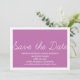 Anuncio de Guardar la Fecha con Capricho en fucsia radiante y blanco con un diseño de tipografía de escritura simple y divertido. Esta invitación de guardar la fecha de moda es fácil de personalizar con los detalles de su boda. Para más opciones de personalización, haga clic en el botón Personalizar.