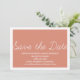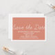Anuncio de Guardar la Fecha con Capricho en naranja y blanco con un diseño de tipografía de escritura simple y divertido. Esta invitación de guardar la fecha de moda es fácil de personalizar con los detalles de su boda. Para más opciones de personalización, haga clic en el botón Personalizar.