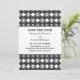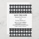 Anuncio de guardar la fecha simple y elegante en negro y blanco con un patrón art déco con estilo. Esta invitación de guardar la fecha es fácil de personalizar con los detalles de su boda. Haga clic en "Personalizar" para encontrar más opciones de personalización.