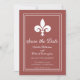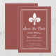 Elegante y simple invitación de boda para guardar la fecha con una flor de lis contra un fondo de terracota. Este diseño es una elección única para anunciar una boda moderna. Fácil de personalizar con los detalles de su boda. Haga clic en "Personalizar" para encontrar más opciones de personalización.