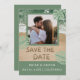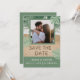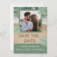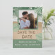 Vibraciones modernas de playa en verde salvia y azul turquesa con foto, letras de arena para guardar la fecha y foto personalizada. NOTA: El texto, la fuente, los colores y los elementos son totalmente personalizables utilizando la herramienta de diseño.