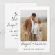Personaliza esta invitación simple y elegante de guardar la fecha de boda a doble cara con una foto, gris oscuro y blanco, con tu mensaje y detalles. Esta invitación chic incluye tipografía de letra manuscrita moderna y elegante para la celebración especial de la boda próxima a celebrarse.