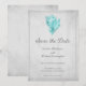 Elegante y simple invitación de boda para guardar la fecha con una concha vintage sobre un fondo gris grunge. Este diseño es una opción única para anunciar una boda moderna. Fácil de personalizar con los detalles de su boda. Haga clic en "Personalizar" para encontrar más opciones de personalización.