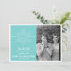 Anuncia tu boda con tema de vacaciones o invierno con este Anuncio de Guardar la Fecha de Copo de Nieve Dulce. Con un copo de nieve blanco delicado y elegante y una franja delgada en un fondo turquesa sólido, este diseño divertido es fácil de personalizar. Simplemente agrega tu propia foto y detalles de la boda en los campos de texto proporcionados o haz clic en "Personalizar" para encontrar más opciones de personalización.