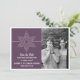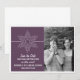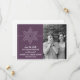 Anuncia tu boda con tema navideño o invernal con este Anuncio de Guardar la Fecha de Copo de Nieve Dulce. Con un delicado y elegante copo de nieve blanco y una franja fina en un fondo morado sólido, este diseño divertido es fácil de personalizar. Simplemente agrega tu propia foto y detalles de la boda en los campos de texto proporcionados o haz clic en "Personalizar" para encontrar más opciones de personalización.