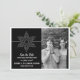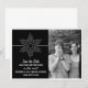 Anuncia tu boda con tema navideño o invernal con este Anuncio de Guardar la Fecha de Copo de Nieve Dulce. Con un delicado y elegante copo de nieve blanco y una franja delgada sobre un fondo negro sólido, este divertido diseño es fácil de personalizar. Simplemente agrega tu propia foto y detalles de la boda en los campos de texto proporcionados o haz clic en "Personalizar" para encontrar más opciones de personalización.
