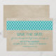 Anuncios de guardar la fecha de Cuatrofoja Rústica elegantes y sofisticados con un fondo de textura vintage y un borde de patrón moderno en turquesa. Fácil de personalizar, simplemente agregue los detalles de su boda. Haga clic en "Personalizar" para encontrar más opciones de personalización.