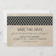 Anuncios de guardar la fecha de quatrefoil rústico elegantes y sofisticados con un fondo de textura vintage y un borde de patrón moderno en blanco y negro. Fácil de personalizar, simplemente agregue los detalles de su boda. Haga clic en "Personalizar" para encontrar más opciones de personalización.