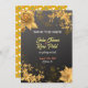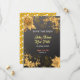 Tarjeta de invitación de SAVE LA FECHA para la boda de tus sueños. La tarjeta está diseñada con flores doradas y diseño de pétalos en un fondo negro degradado. También puedes descargarlo instantáneamente y compartir en un ziff.