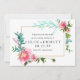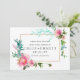 Lindas peonías rosadas anidadas en follaje botánico moderno decoran un marco dorado chic. Las hojas y enredaderas son de un verde profundo a azul turquesa. La disposición del texto y las fuentes son modernas y frescas. La parte posterior también es rosa. Esta invitación de guardar la fecha coordina con la Colección de Guardar la Fecha Peonía Rosa. Contiene stickers para sobres, forros para sobres y otros accesorios que puedes usar para hacer que tu Guardar la Fecha sea único y especial