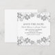 Anuncio moderno y elegante de Guardar la Fecha Floral Simple en gris claro con cascadas de hermosas vides y flores. Esta elegante invitación para guardar la fecha es perfecta para anunciar una boda de primavera o verano. Fácil de personalizar, simplemente agregue los detalles de su boda. Haga clic en "Personalizar" para encontrar más opciones de personalización.