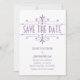 Anuncio de Guardar la Fecha Ornamental de Lujo simple y elegante en morado y blanco con un borde floreado ornamental de estilo art déco sofisticado. Fácil de personalizar, simplemente agregue los detalles de su boda en los campos de texto proporcionados. Haga clic en "Personalizar" para encontrar más opciones de personalización.