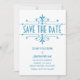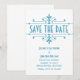 Anuncio de guardar la fecha ornamental elegante y simple en azul y blanco con un borde floreado ornamental de estilo art déco sofisticado. Fácil de personalizar, simplemente agregue los detalles de su boda en los campos de texto proporcionados. Haga clic en "Personalizar" para encontrar más opciones de personalización.