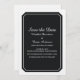 Anuncio de guardar la fecha de boda moderno y chic simplemente elegante con un diseño de emblema de entrada negro elegante. Este diseño clásico y elegante es fácil de personalizar con los detalles de su boda. Para más opciones de personalización, haga clic en Personalizar.